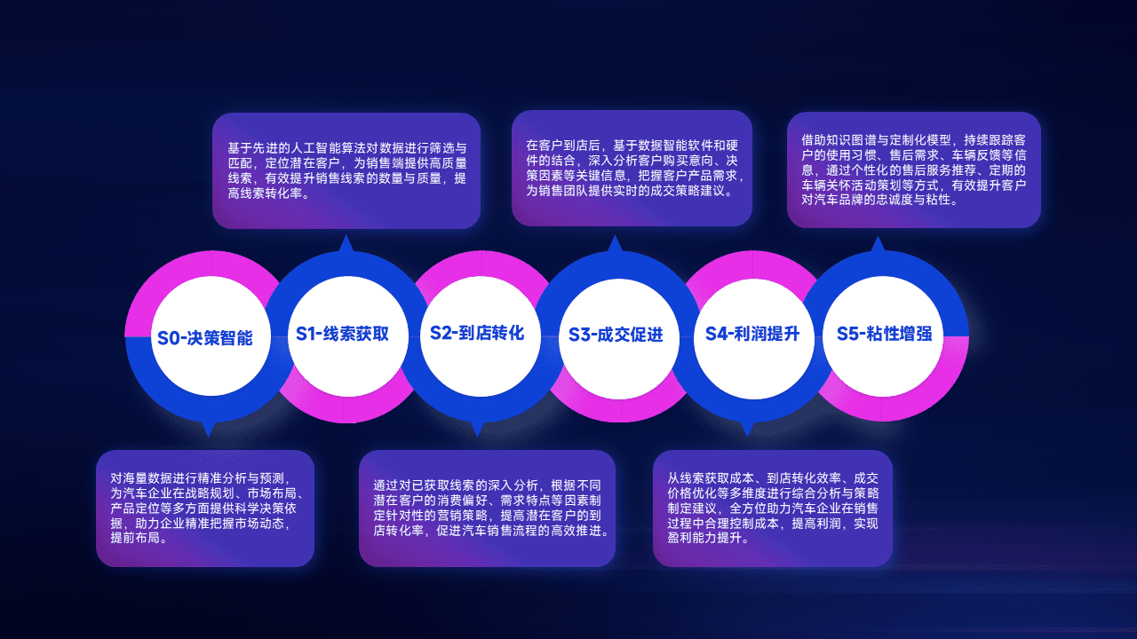 通过拓宽潜在客户来源、、、优化线索分配并提高到店转化率,,,,以增强销售效率。。。。同时,,,,利用线索数据不断优化分析模型,,有效提升转化率,,,扩大营销影响力。。